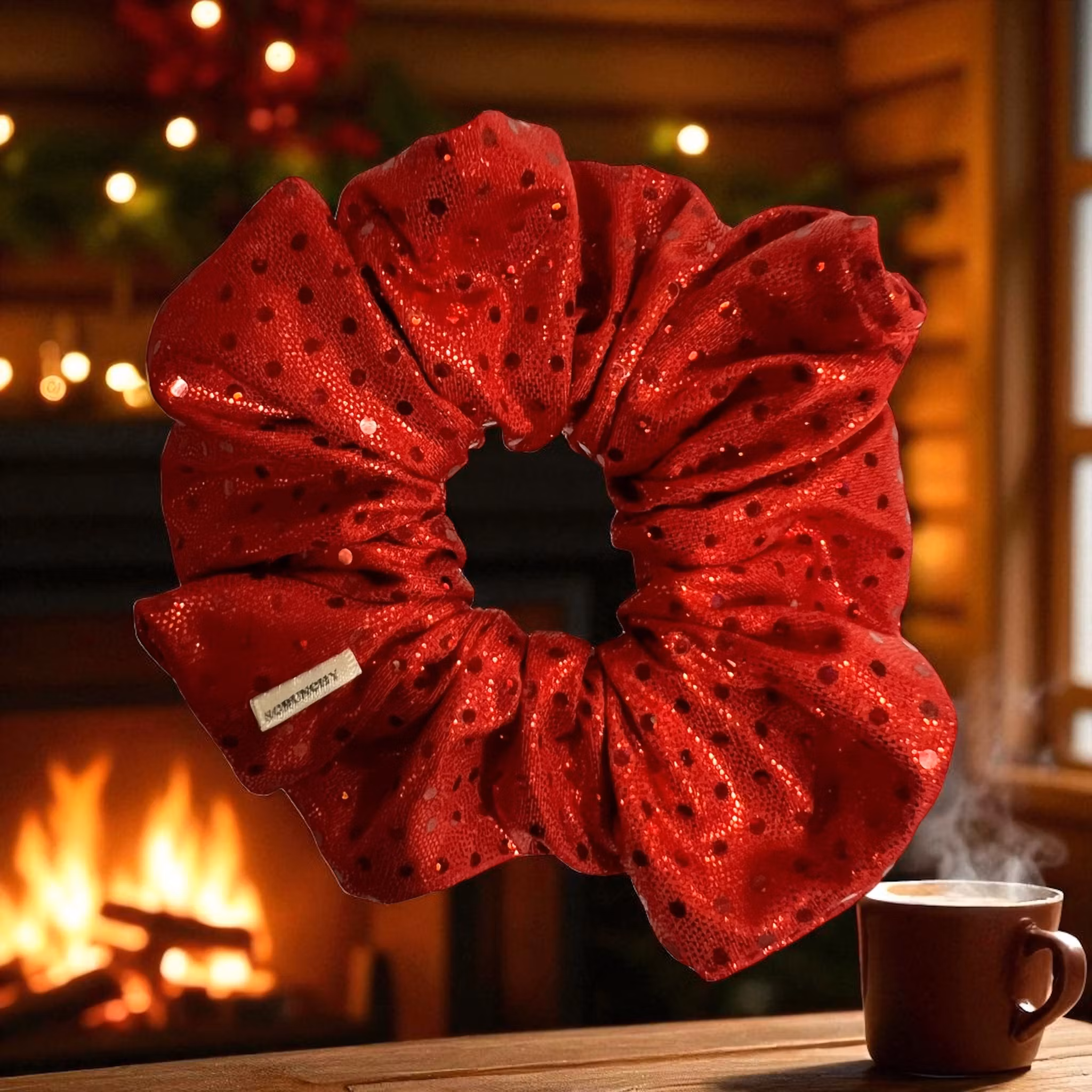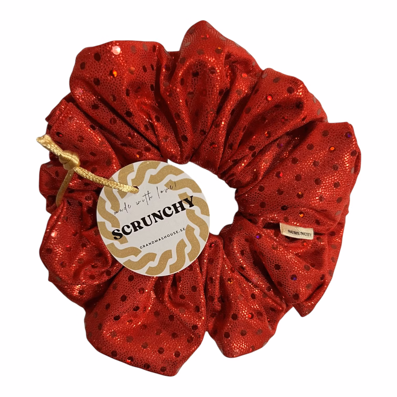 Läcker scrunchy i rött festtyg med paljetter. Julens måste!