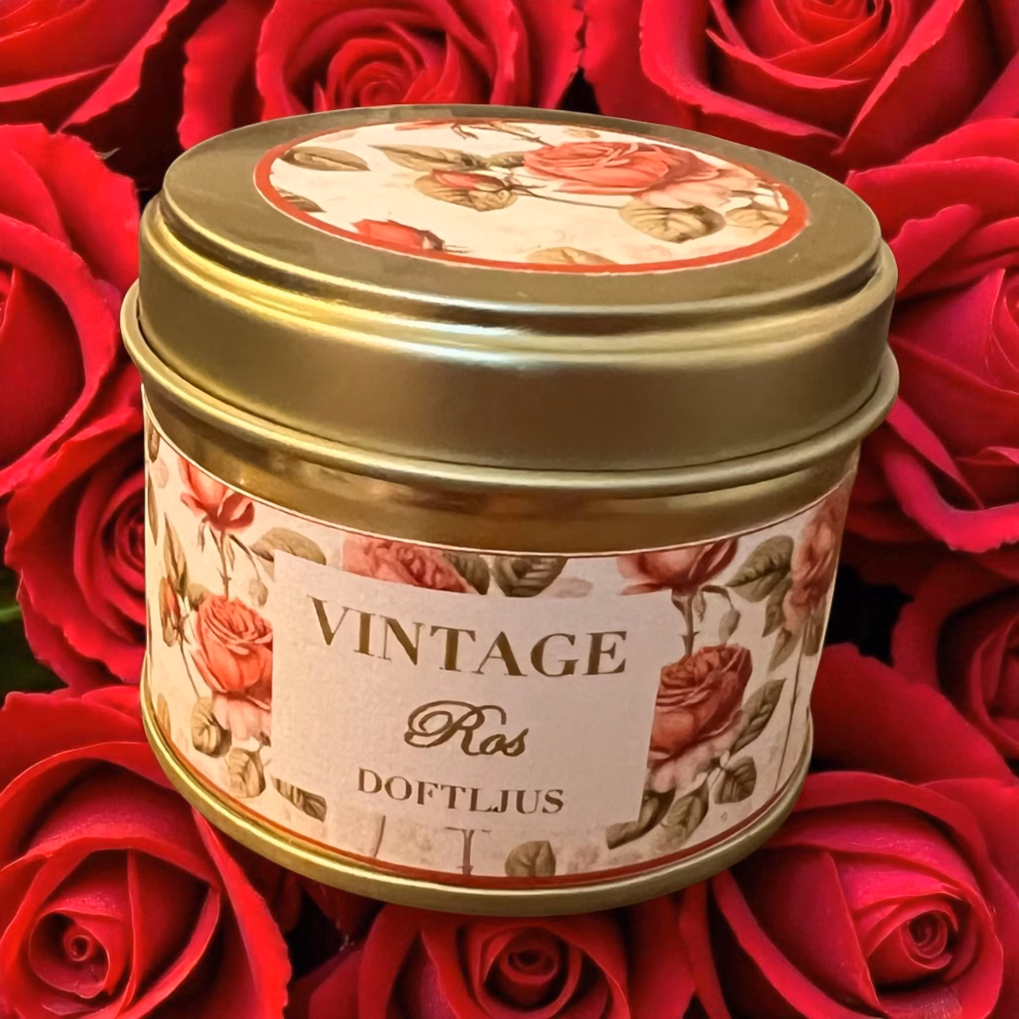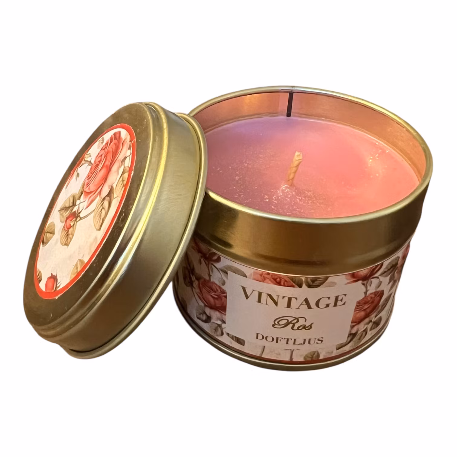 Doft av ljuvlig ros. Ljuset är av sojavax och brinntid ca 35 timmar