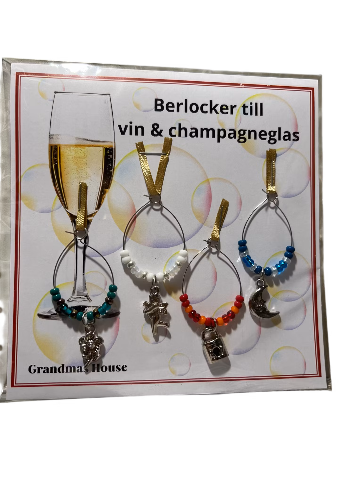 Söta markörer till vinglaset. Beställer du fler paket kommer färgerna vara detsamma men berlockerna olika. så att du får tex åtta olika