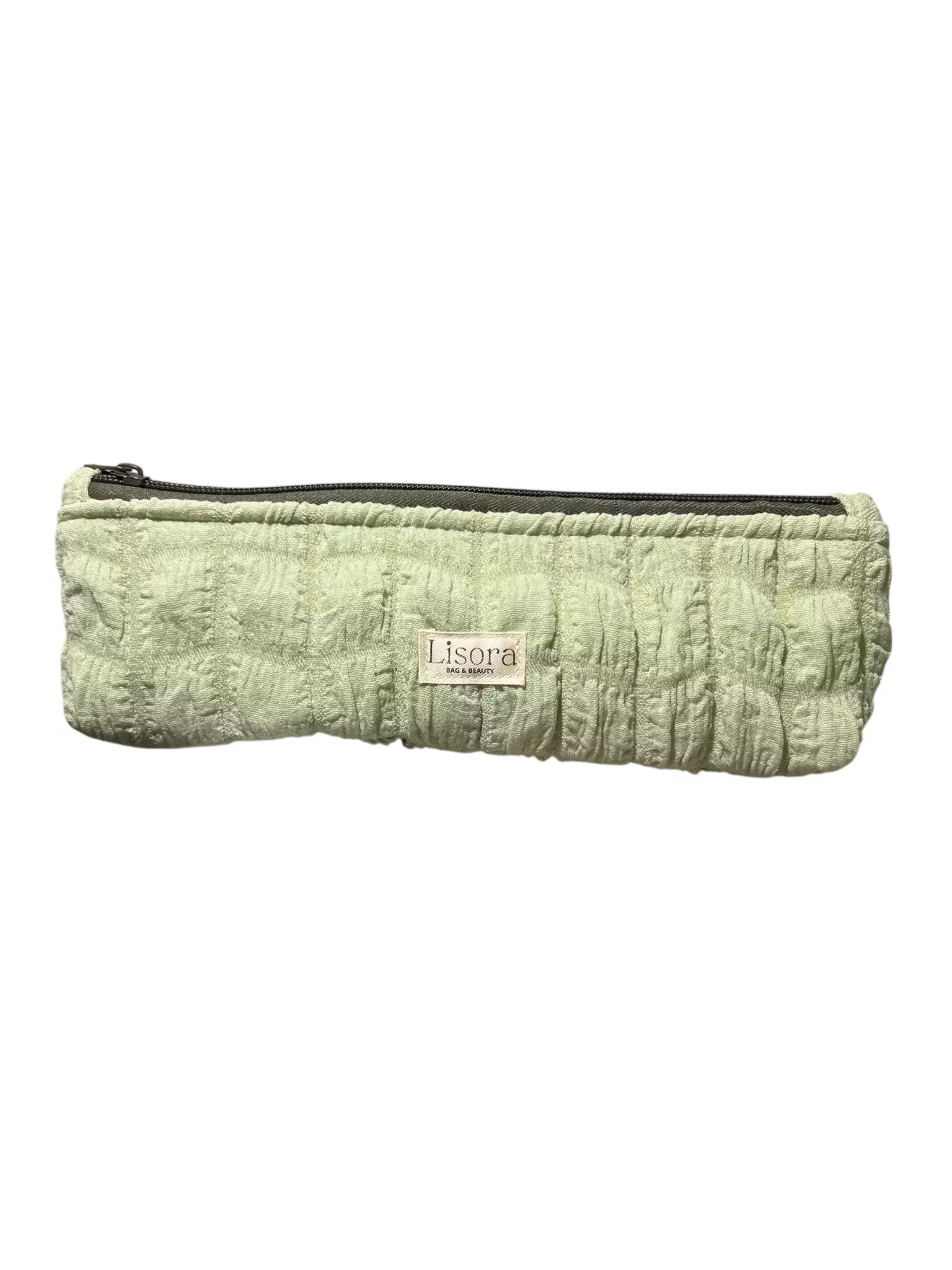 extra långt pennfack eller sminkväska. bubbligt piggelinfärgat tyg 26 cm x 9,5 cm