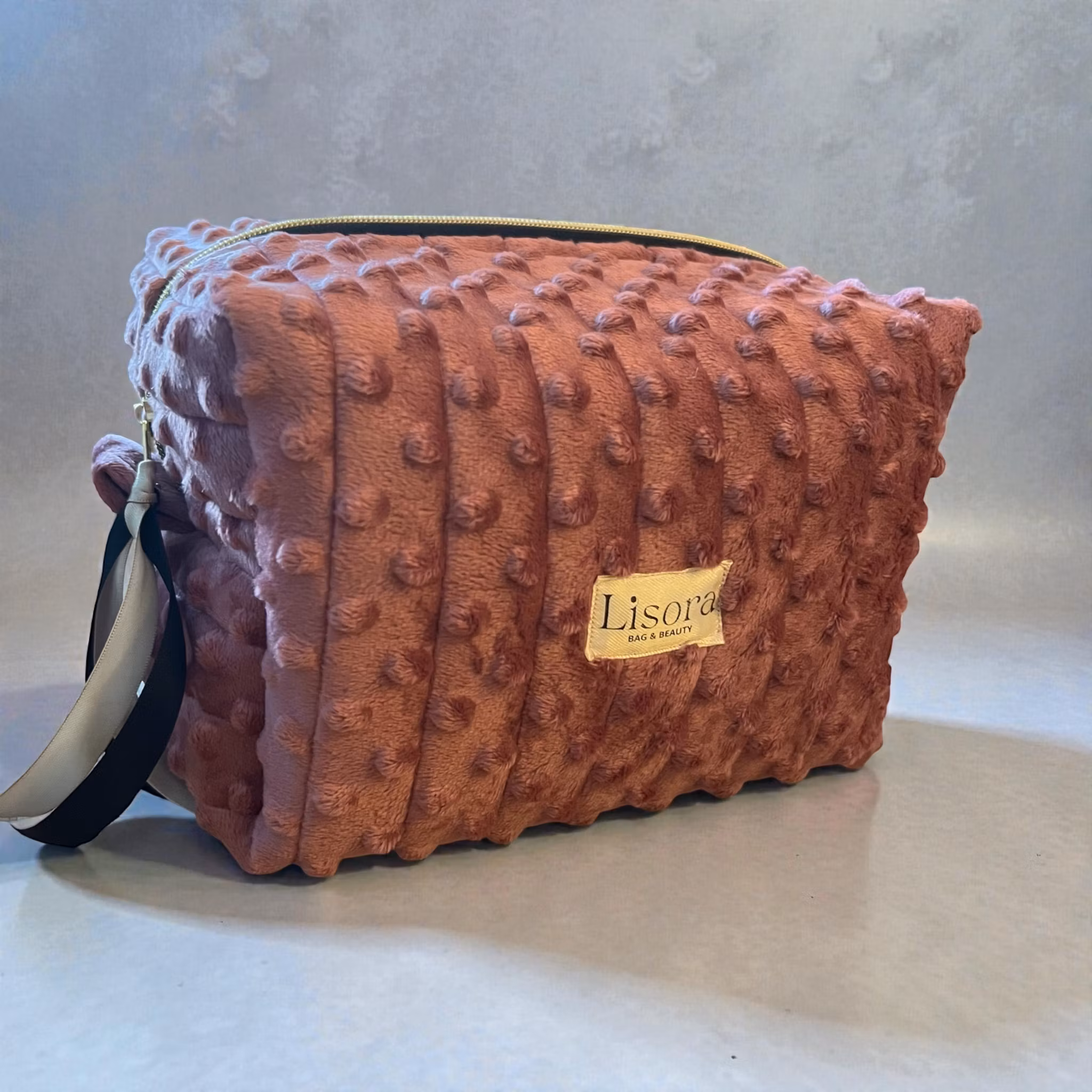 Superfin Necessär som är vadderad och fodrad med prickigt bomullstygStorlek: 25 x 20 x 16 cm