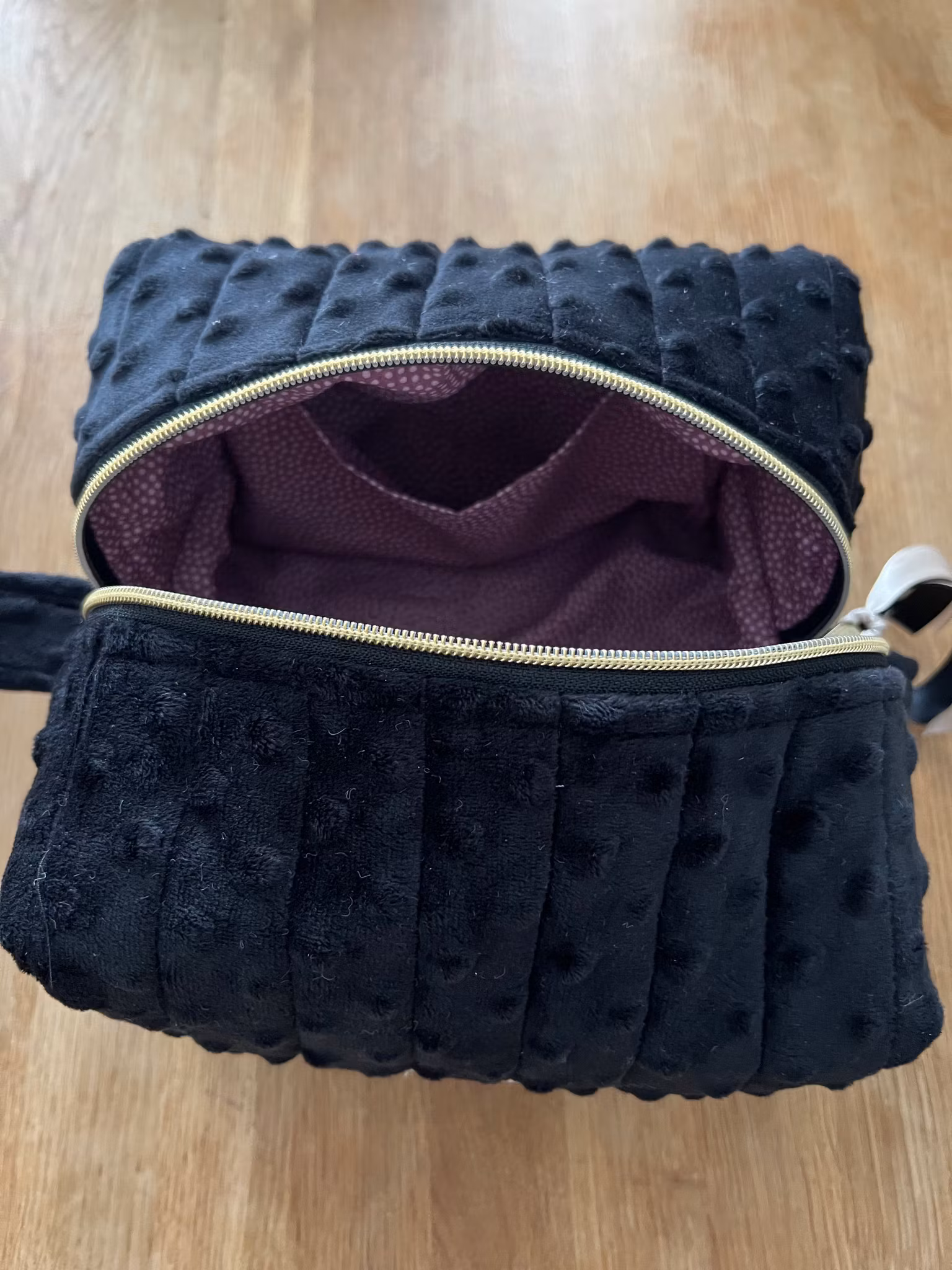 Superfin Necessär som är vadderad och fodrad med prickigt bomullstyg